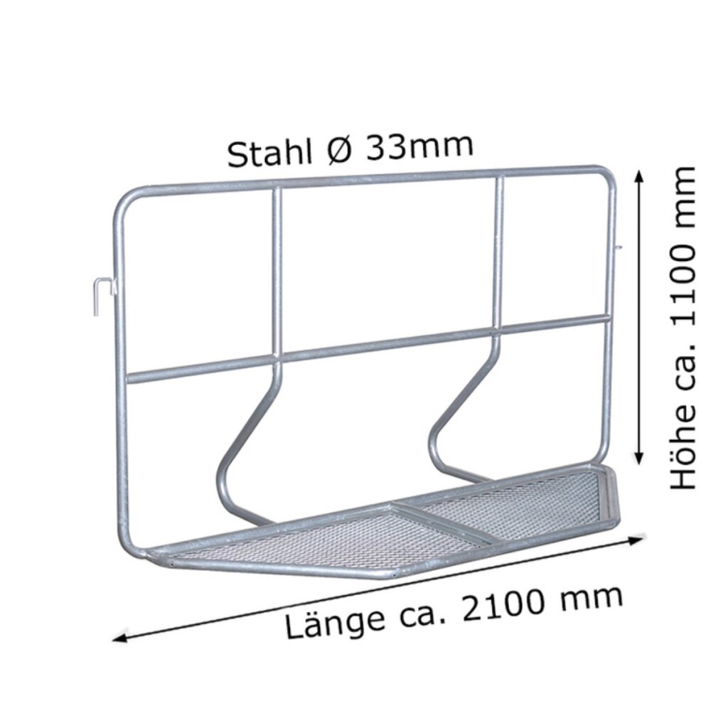 Das Absperrgitter 'Police L' aus Stahl ist eine ideale Lösung für den Einsatz in verschiedenen Bereichen. Mit einer Gesamtlänge von 2100 mm, einer Gesamthöhe von 1100 mm und einer Gesamttiefe von 600 mm bietet es die perfekte Größe für verschiedenste Bedürfnisse. Das Gitter ist aus verzinktem Stahl gefertigt, was für eine hohe Haltbarkeit und Langlebigkeit sorgt. Mit einem Gewicht von 33 kg und einem Rohr Ø von 33,7 mm ist es stabil und robust. Im Lieferumfang enthalten sind Haken und Verbindungsbügel, die eine einfache und schnelle Montage ermöglichen.