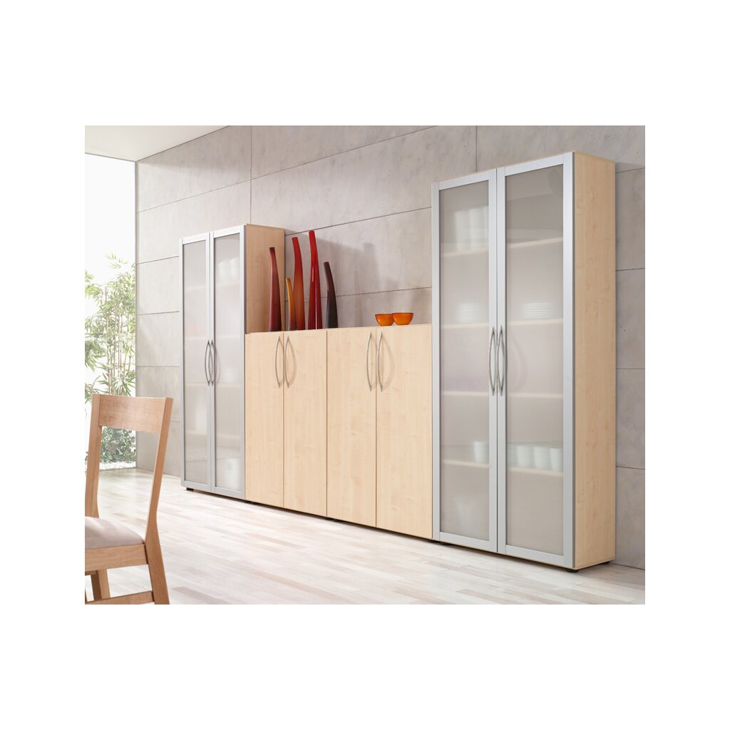 MATERIAL: melaminharzbeschichtete Platten nach DIN 68765, Emissionsklasse E1, Vorderkante mit 2 mm ABS-Kanten, gerundet. Seiten, Platte und Boden 16 mm dick, Zwischenböden und Fachböden 19 mm dick.