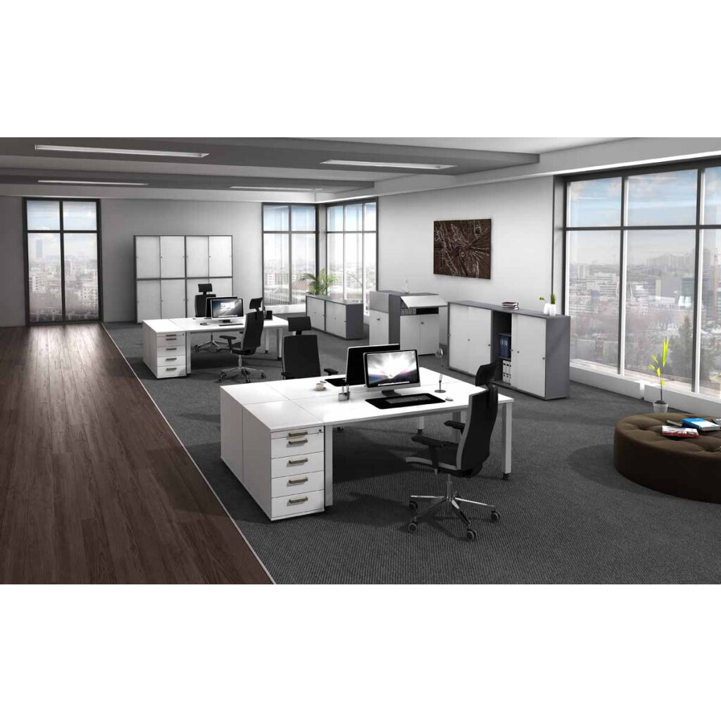 MATERIAL: melaminharzbeschichtete Platten nach DIN 68765, Emissionsklasse E1, Vorderkante mit 2 mm ABS-Kanten, gerundet. Seiten, Platte und Boden 19 mm dick. TRAGKRAFT: 25 kg pro Fachboden