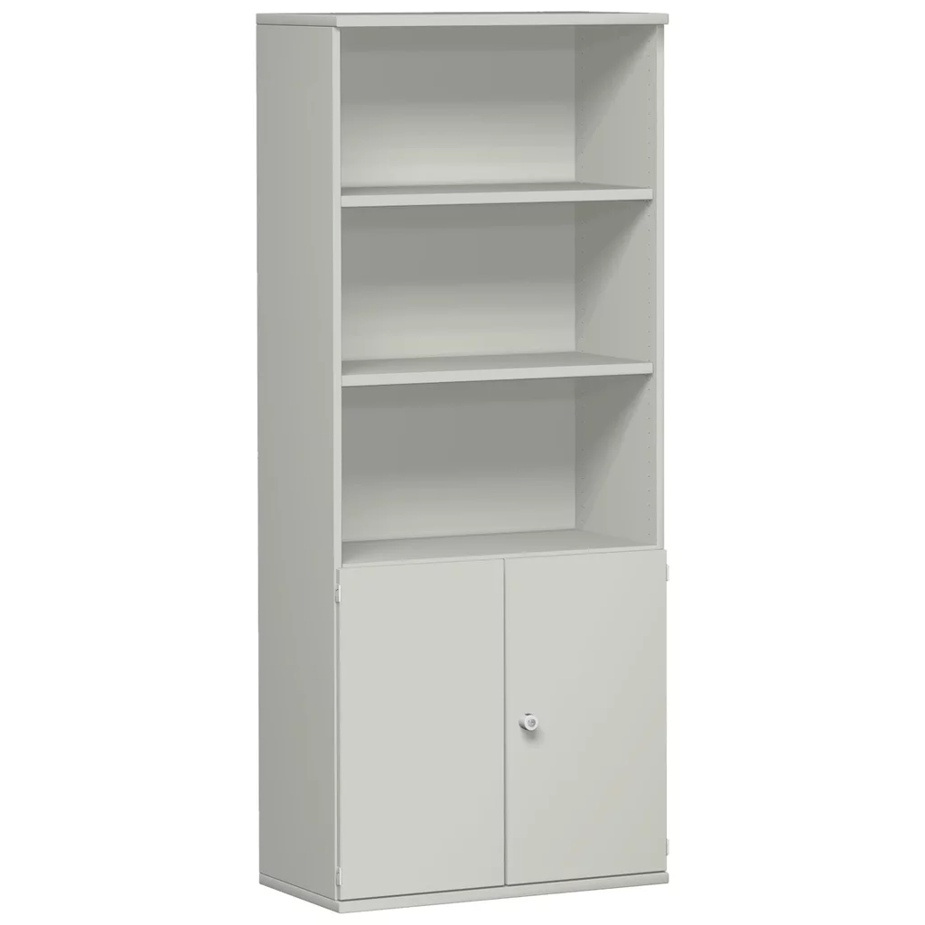 Aktenschrank mit Türen und Regal, 80 cm breit Serie Profi – 5 Ordnerhöhen