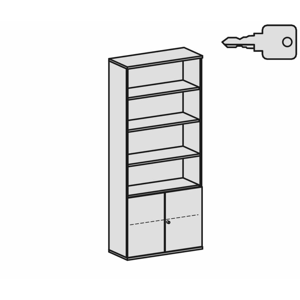 1.+2. Ordnerhöhe Drehtüren aus Holz, abschliessbar, dahinter Fachböden