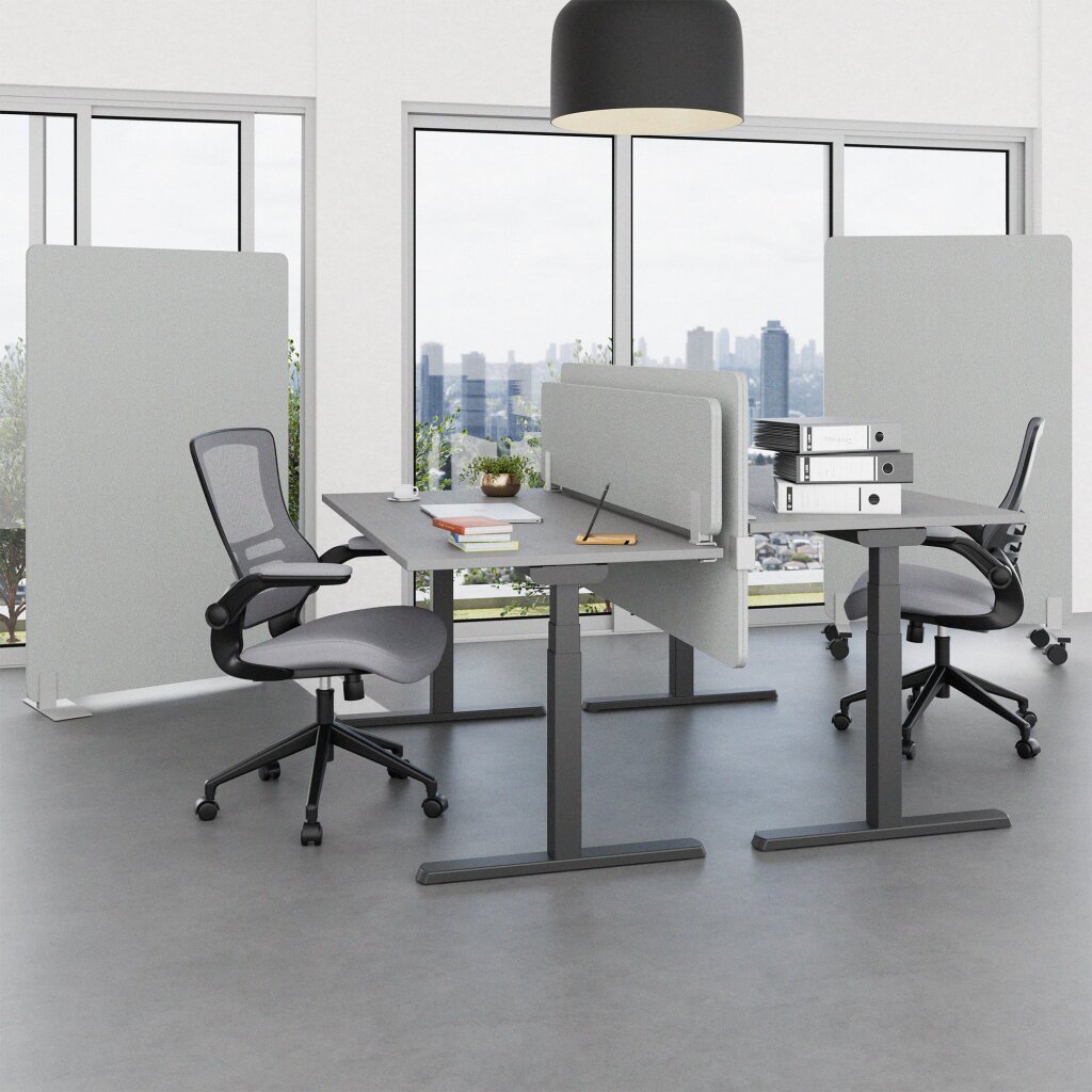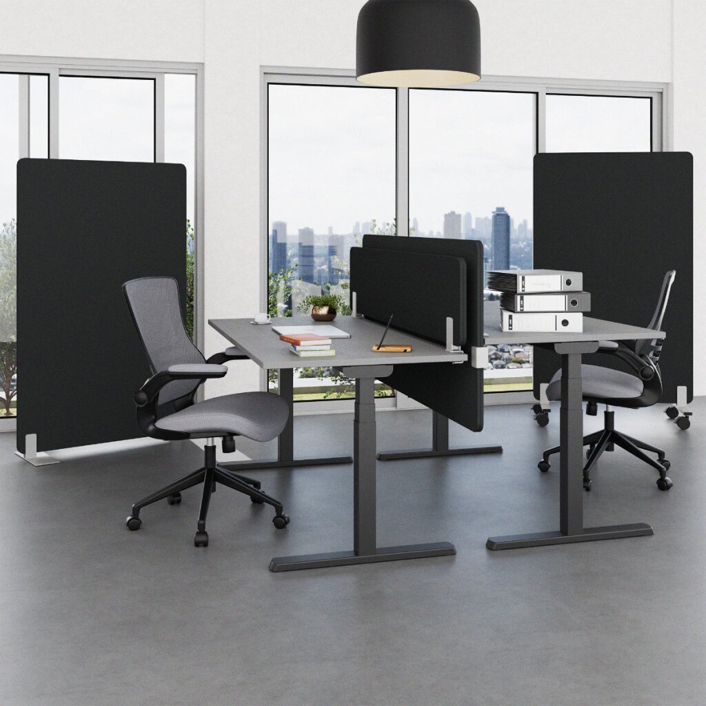 Diese Hintertischwand lässt sich durch die mitgelieferten Tischklemmen schnell und unkompliziert am Schreibtisch befestigen.