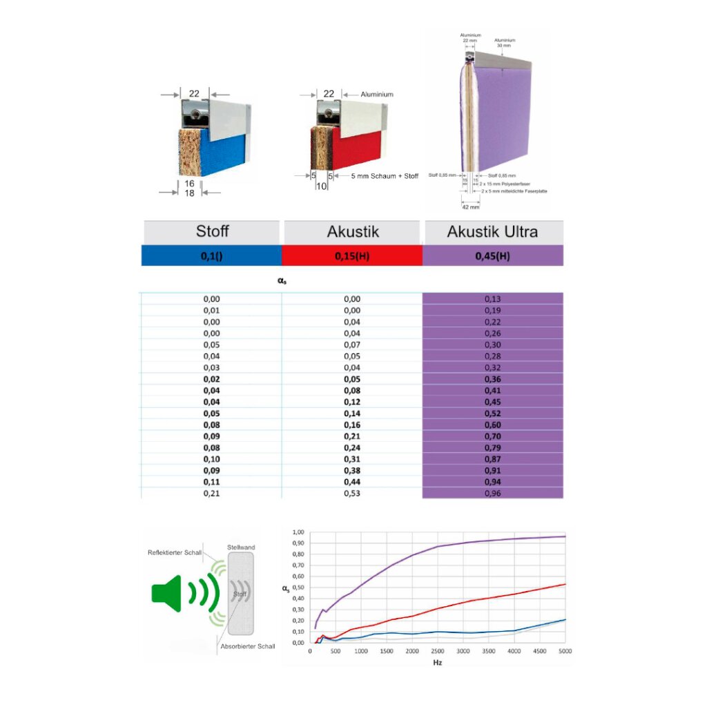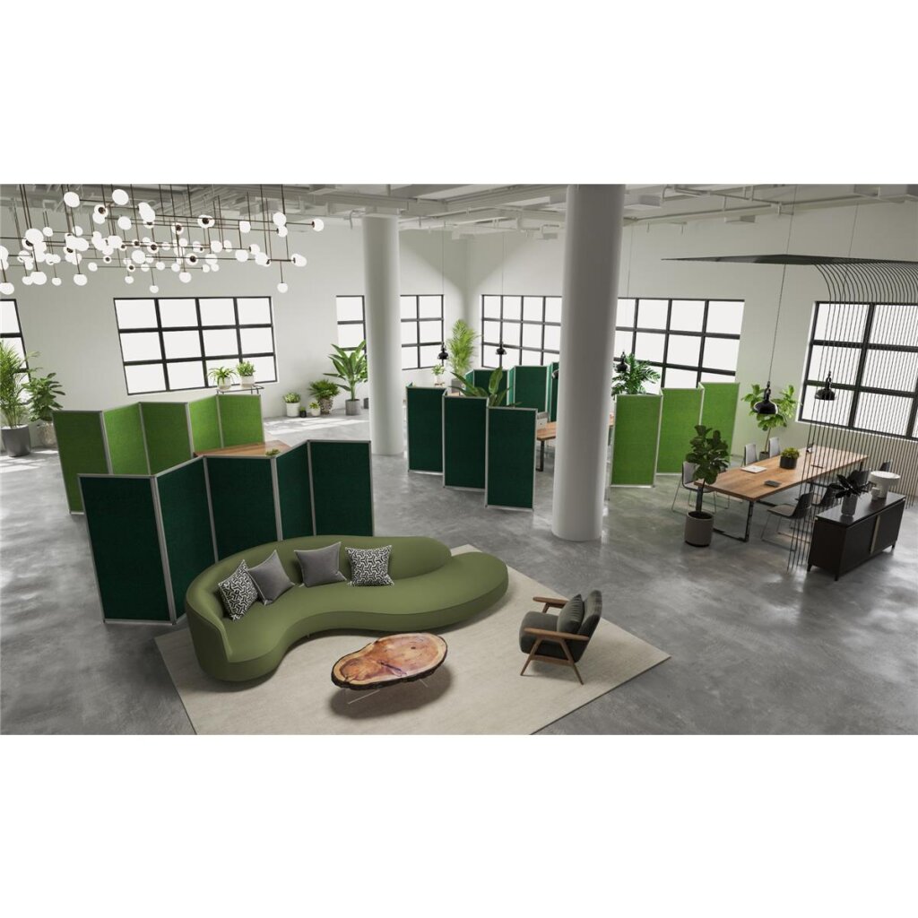 Diese stark schallabweisende Akustik Stellwand ist die ideale Lösung für Büros, Callcenter und andere Arbeitsumgebungen, in denen Ruhe und Konzentration von größter Bedeutung sind. Wählen Sie aus einer breiten Palette von Farben, um die Stellwand perfekt an Ihr Bürodesign anzupassen. Durch die unterschiedlich erhältlichen Breiten, kann diese leicht an verschiedene Raumkonfigurationen angepasst werden. Die spezielle Materialzusammensetzung sorgt dafür, dass störende Geräusche effektiv reduziert werden, was zu einer angenehmeren Arbeitsatmosphäre führt.