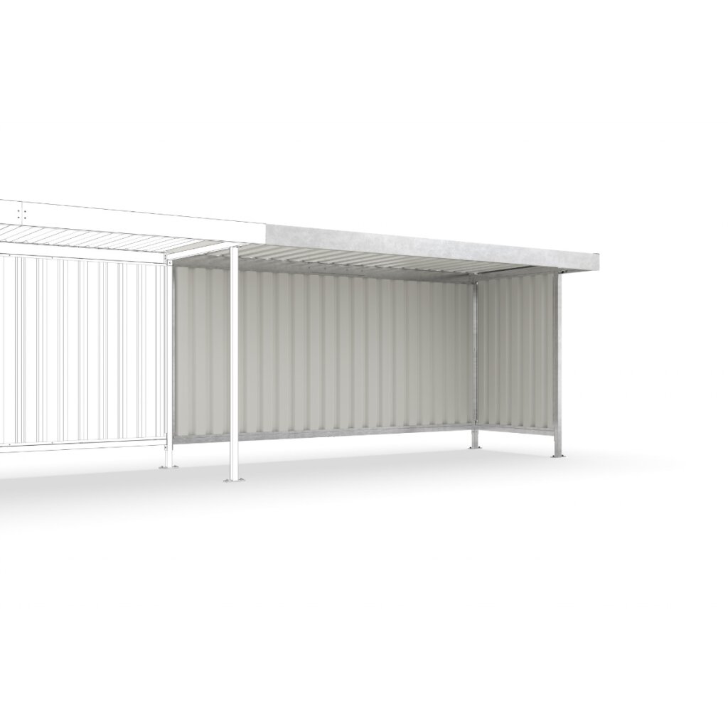 • Seitenwand links und/oder rechts aus feuerverzinkten Trapezblech, feuerverzinkt und beschichtet in RAL 9002