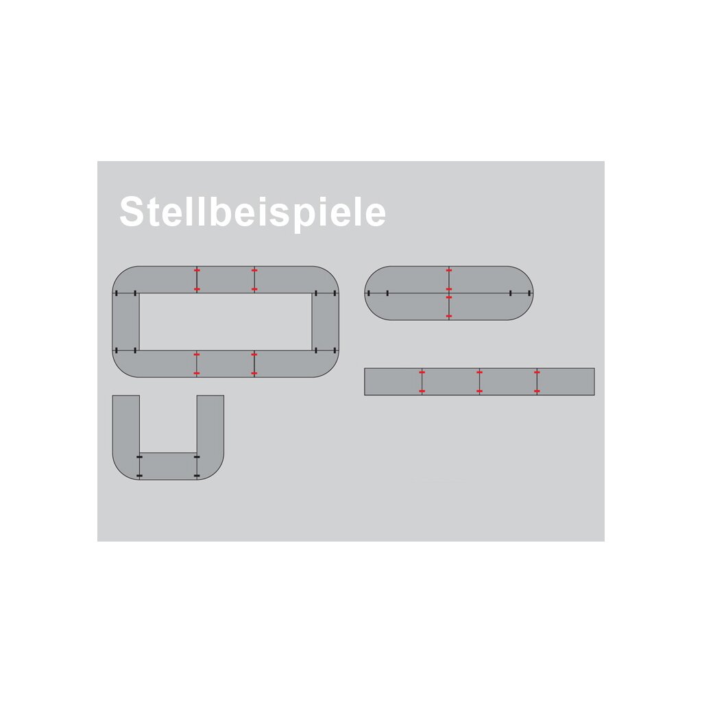 Durch Kombination mit den rechteckigen Tischen lassen sich verschiedene Konferenztische aufbauen.
