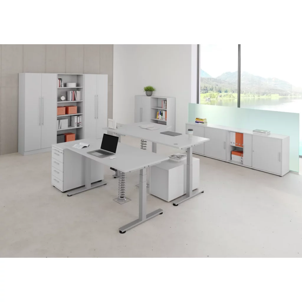 Der elektrisch högenverstellbare Schreibtisch der premiumklasse vermeidet Rückenschmerzen am Arbeitsplatz. Durch die Möglichkeit den Schreibtisch merhmals täglich in der Höhe zu verstellen wechseln sie merhfach die Arbeistposition, um den Rücken zu schonen und die Rückenmuskulatur zu aktivieren.