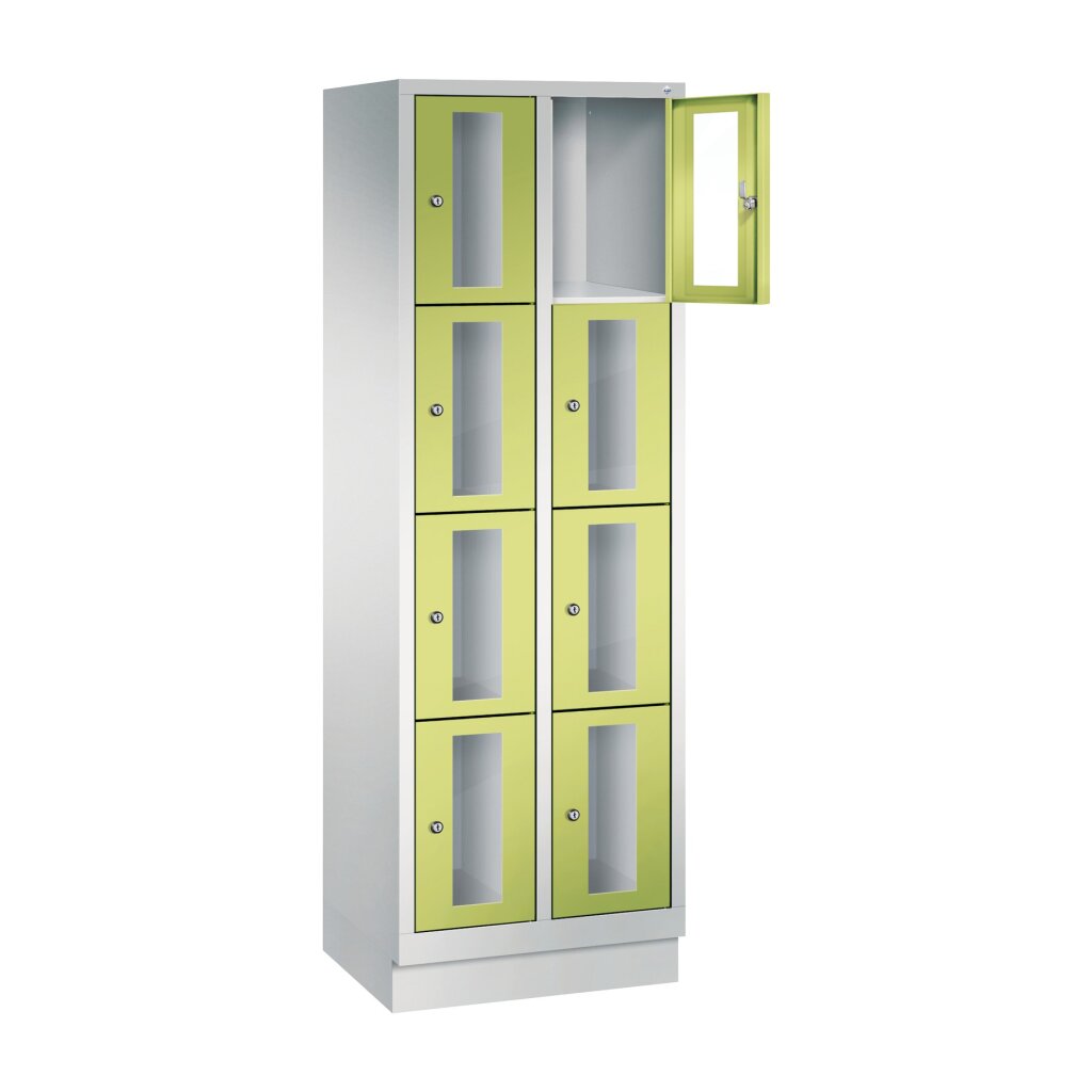 Fächerschrank mit Sichtfenstertüren, 8 Fächer, auf Sockel