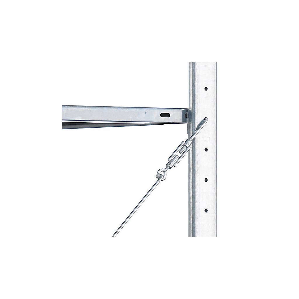 Aussteifung durch Kreuzstrebe, günstige Variante , Regal ist nur einseitig nutzbar, ideal zur Stellung des Regals an eine Wand.