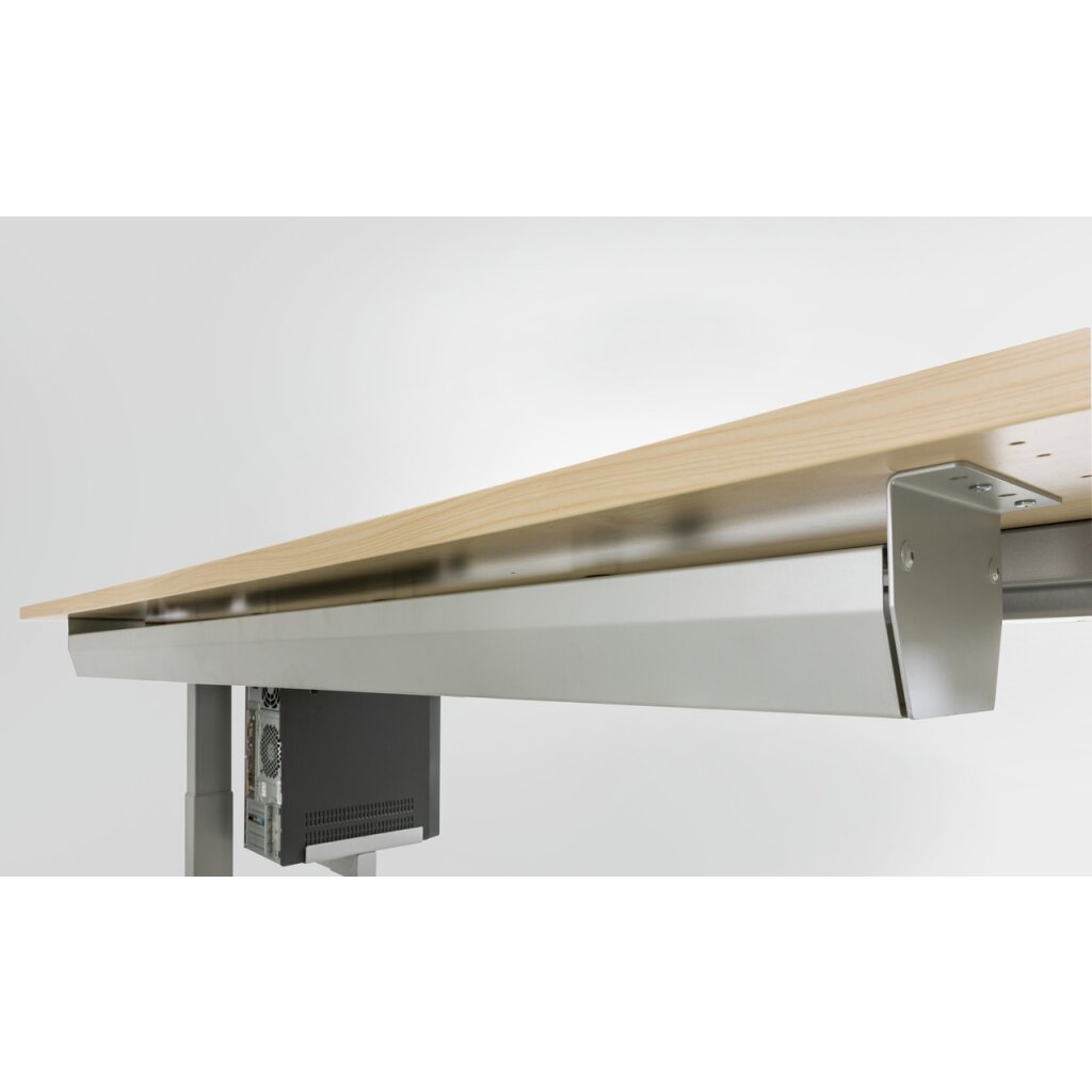 für ein übersichtliches und geordnetes Kabelmanagement, in verschiedenen Größen erhältliche. Diese Kabelwanne kann leicht und problemlos unter der Schreibtischplatte montiert werden, so dass alle Kabel und Leitungen geordnet und sauber untergebracht werden. Zur Bestückung kann die Kabelwanne abgeklappt werden.