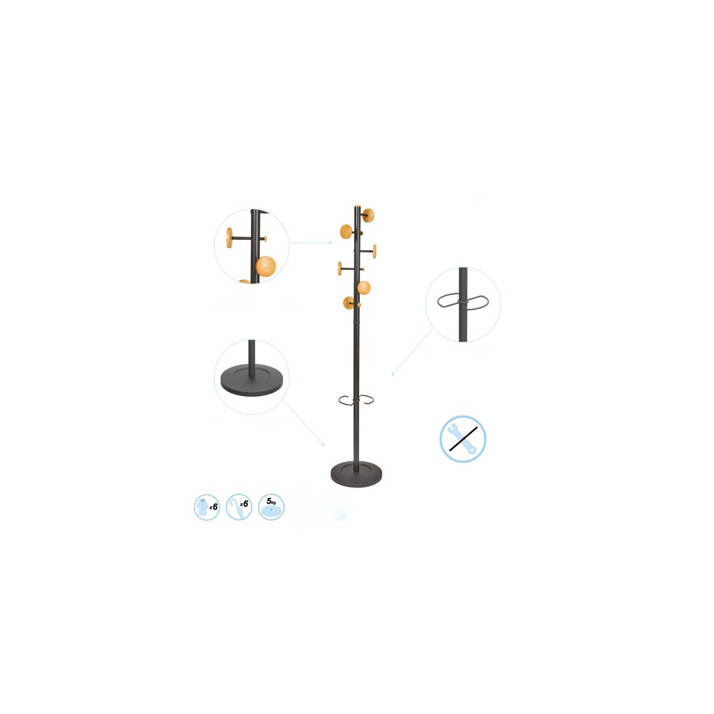 Zeitlos, die Garderobe "Music" wurde durch das Mischen verschiedener Materialien neu gestaltet. Es besteht aus 6 Haken und 3 Mini-Haken zum Aufhängen Ihrer Kleidung und Accessoires, einem Schirmhalter und einer gewichteten Basis. Die elegante Verarbeitung macht diese Garderobe zu einem Muss und passt perfekt in Ihre Arbeitsräume.
