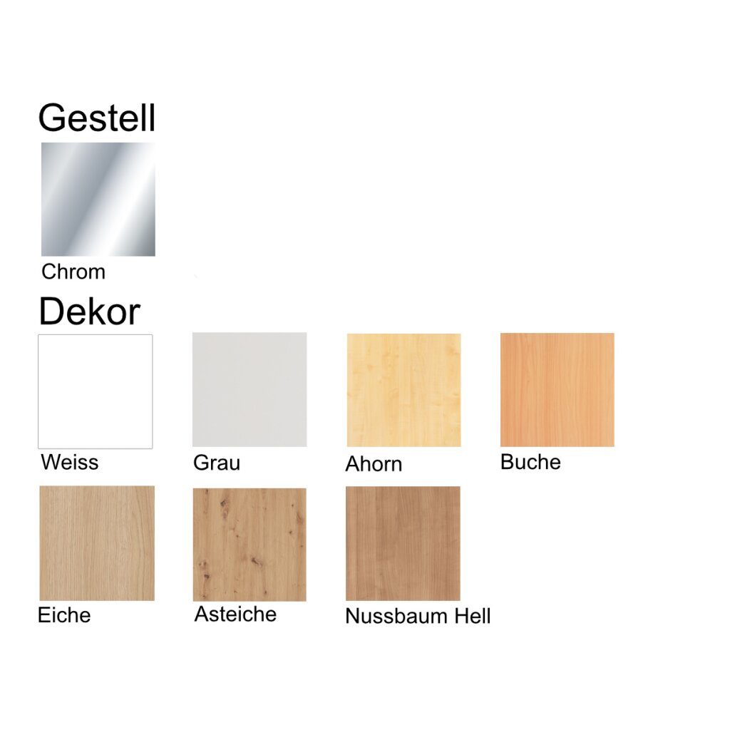 In folgenden Dekoren erhältlich: Weiss, Grau, Ahorn, Buche, Eiche, Asteiche, Nussbaum Hell
