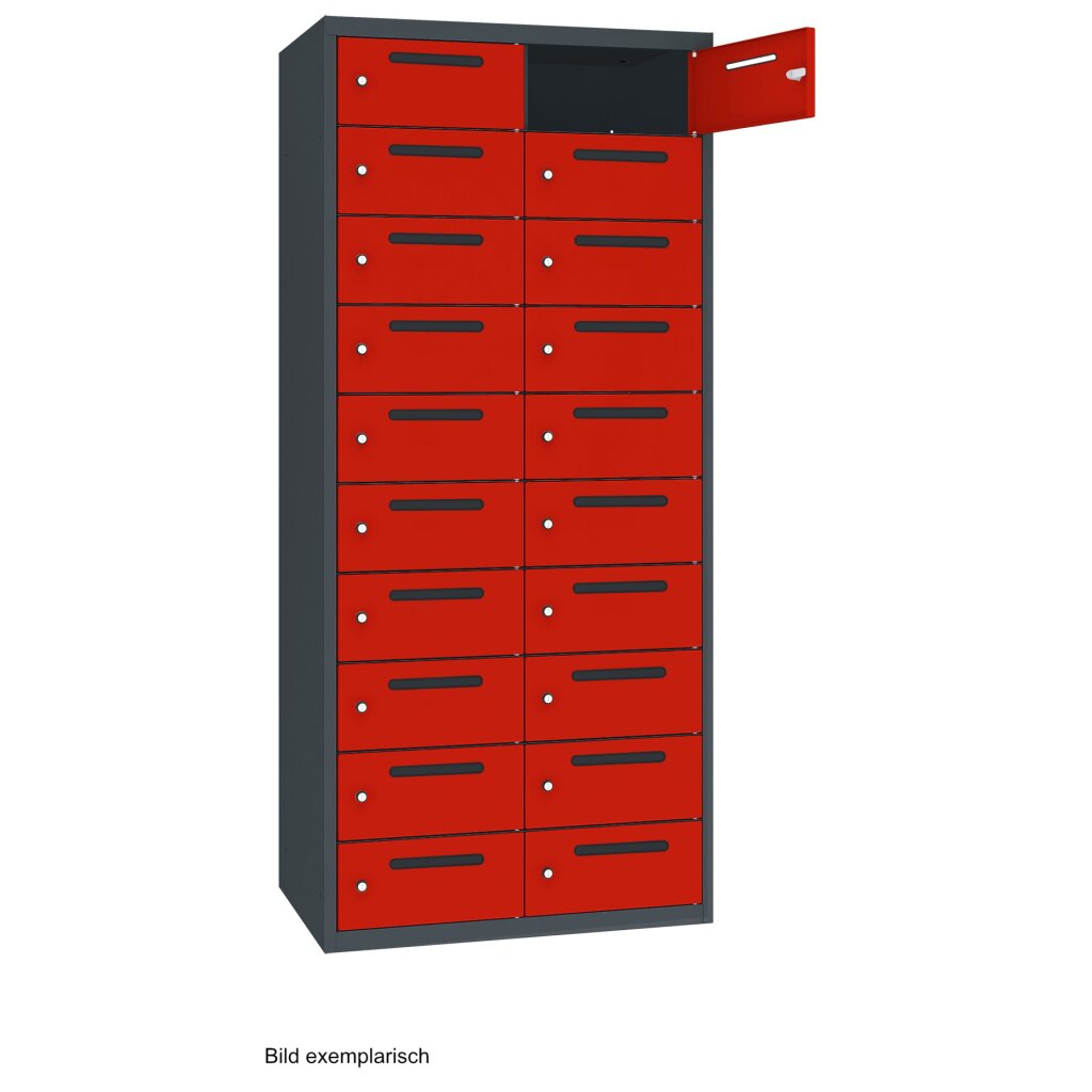2 Abteile mit je 10 Fächern übereinander, Insgesamt 20 Fächer