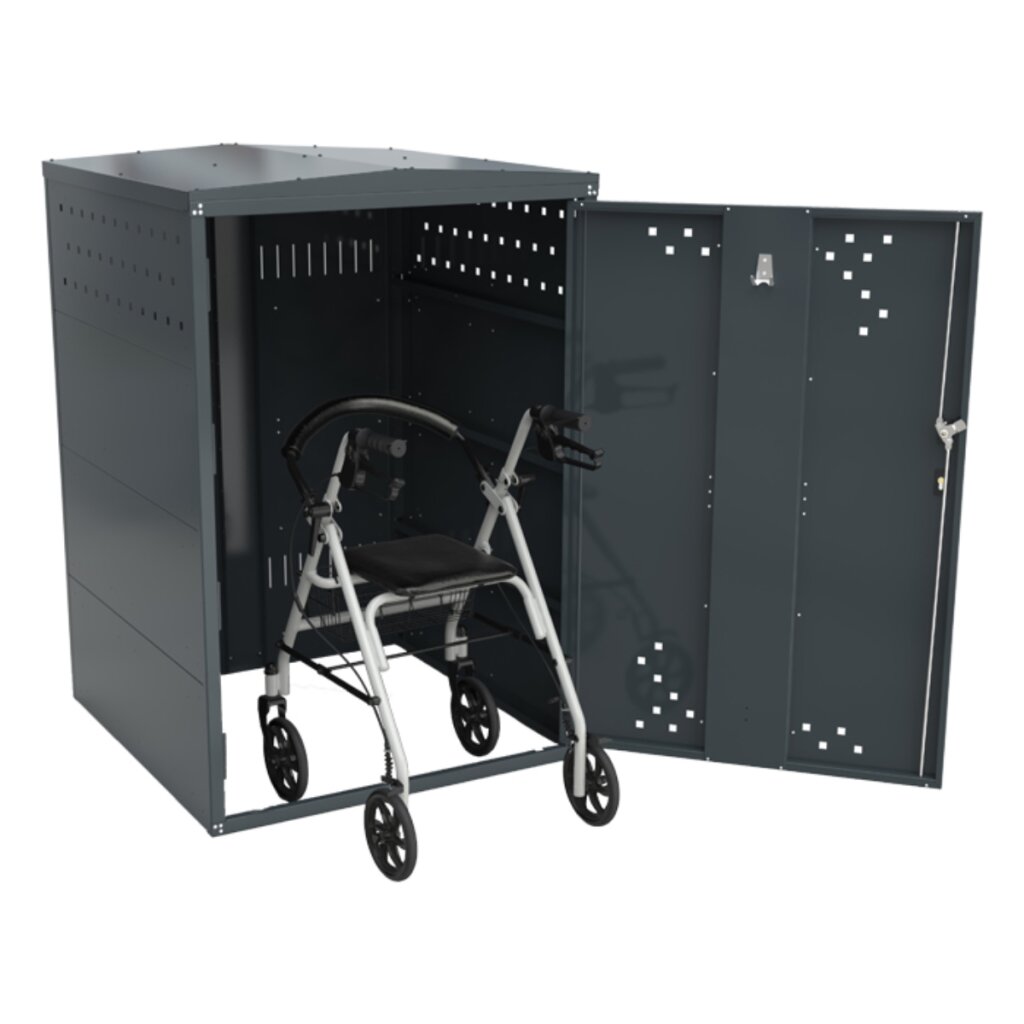 Rollatorgarage/Rollatorbox 'Treasure 2' Dach Giebeldach Modell Grundelement Seitenwand mit 2 Seitenwänden (komplett geschlossen)
