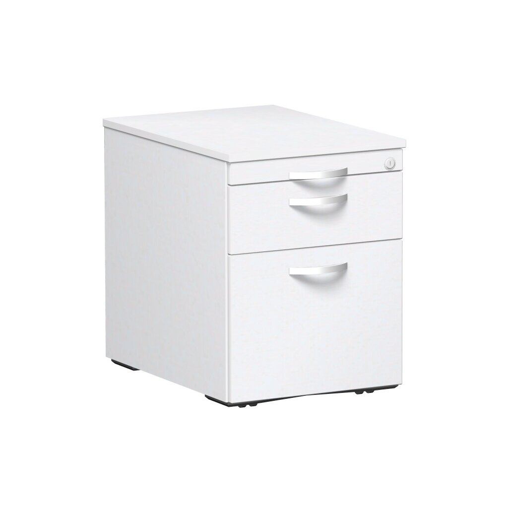 Rollcontainer 60 cm tief, Hängeregistratur und Kunststoff-Schubfach, Dekor Front: Weiss, Dekor Korpus: Weiss