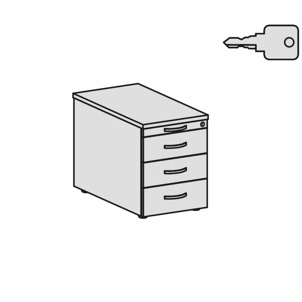 Rollcontainer 80 cm tief, mit 3 Schubladen, Dekor Front: Buche Dunkel, Dekor Korpus: Buche Dunkel