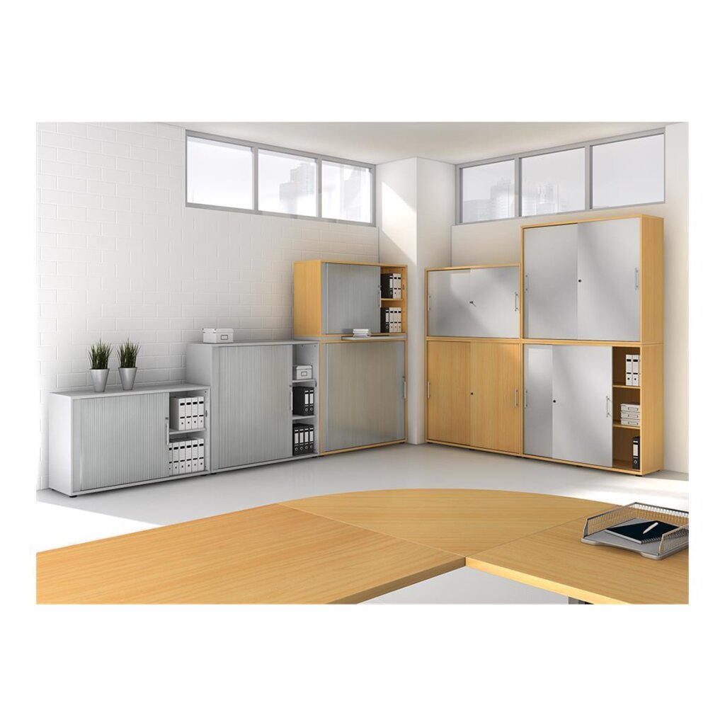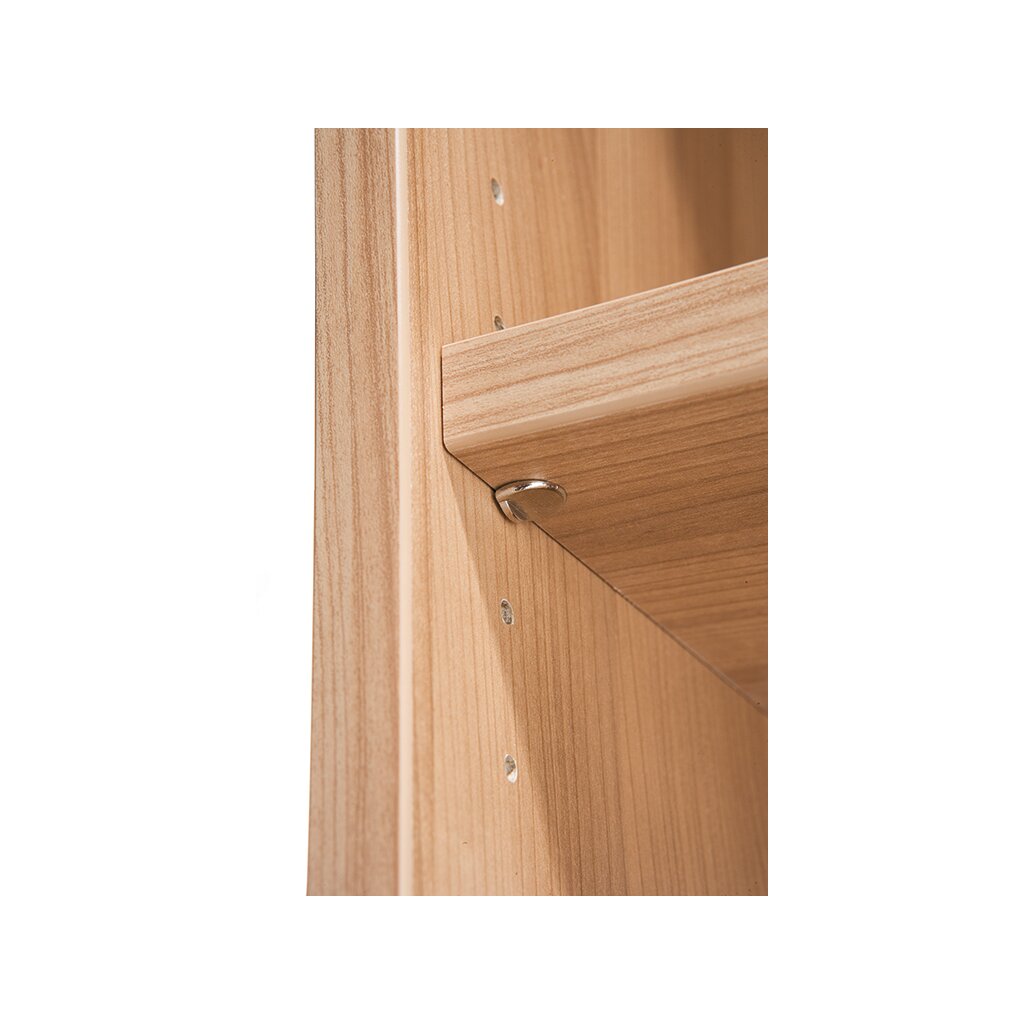 PLATTEN/BÖDEN: Melaminharzbeschichtete Platten. Vorderkante mit 2mm ABS Kante, Seiten und Mittelseite 16mm dick, OBer- und Unterboden 22m stark. Falzrückwand eingenutet und geschraubt, in Silber beschichtet. Fachböden 16mm stark mit ABS-Kante gerundet sind höhenverstellbar im Raster von 32mm