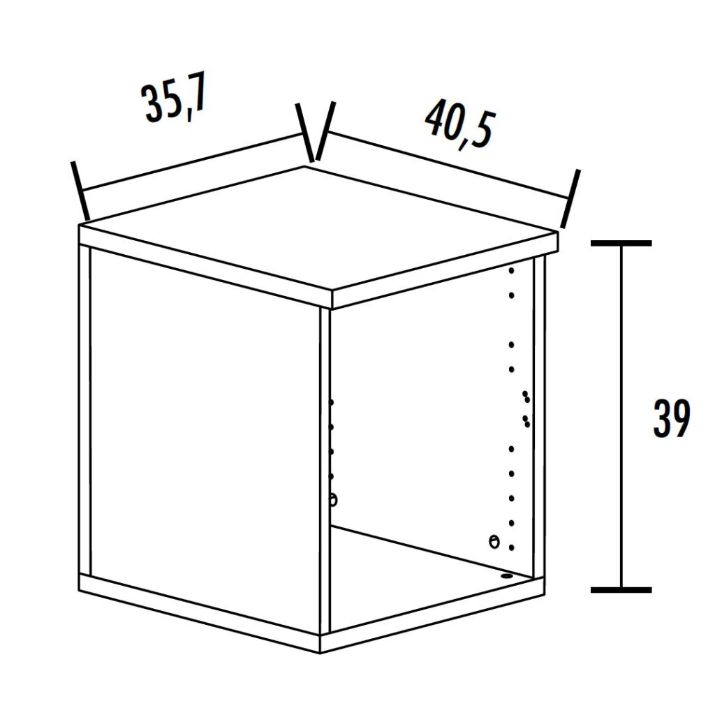 Seitenwände mit durchgehender Lochreihe (Lochabstand 32mm) für weitere Fachböden.