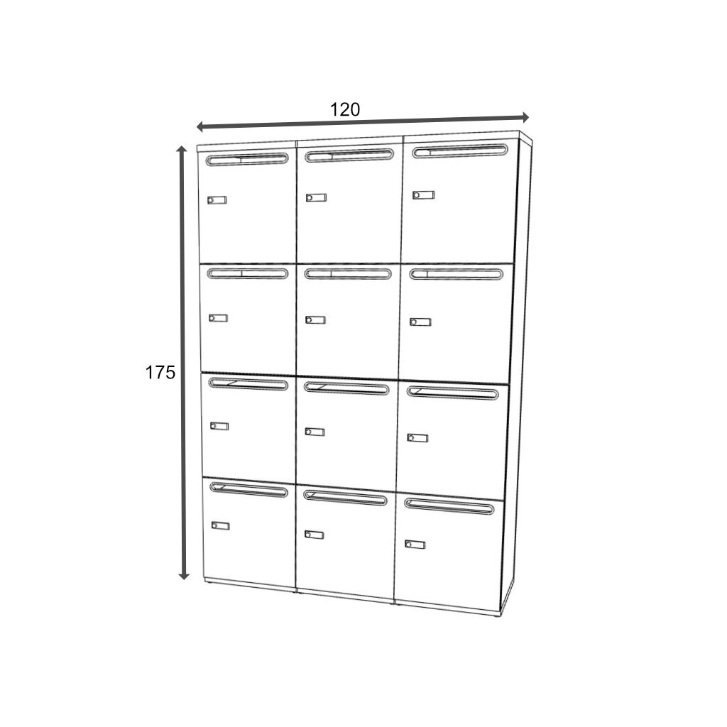 Schliessfachschrank 12 Fächer mit Briefeinwurfschlitz