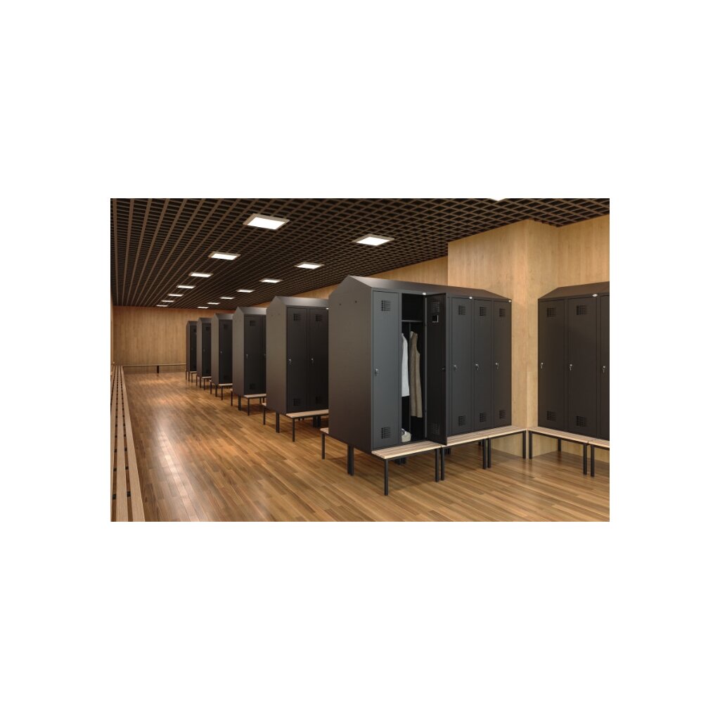 Schrägdachaufsatz zum aufsetzen auf Umkleide und Schliessfachschränke nur für Serie S088, um zu verhindern, dass Produkte oder Taschen auf den Schränken gelagert werden können.