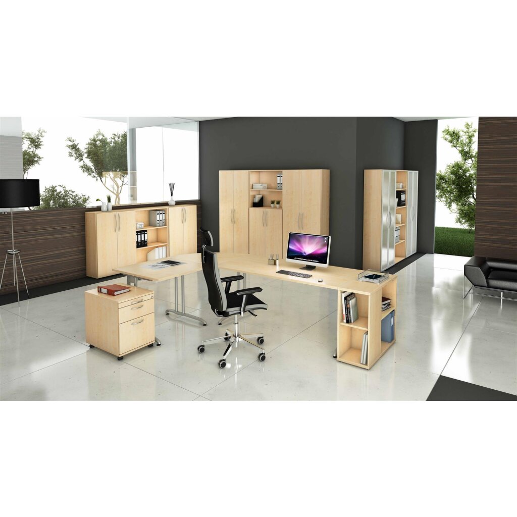 Zusätzlich können Sie den Schreibtisch mit Besprechungsanbauten und Containern ergänzen.