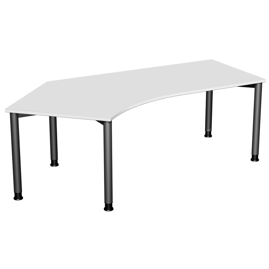 Schreibtisch Freiform 135° links Rundfuss, höhenverstellbar, Lichtgrau/Anthrazit