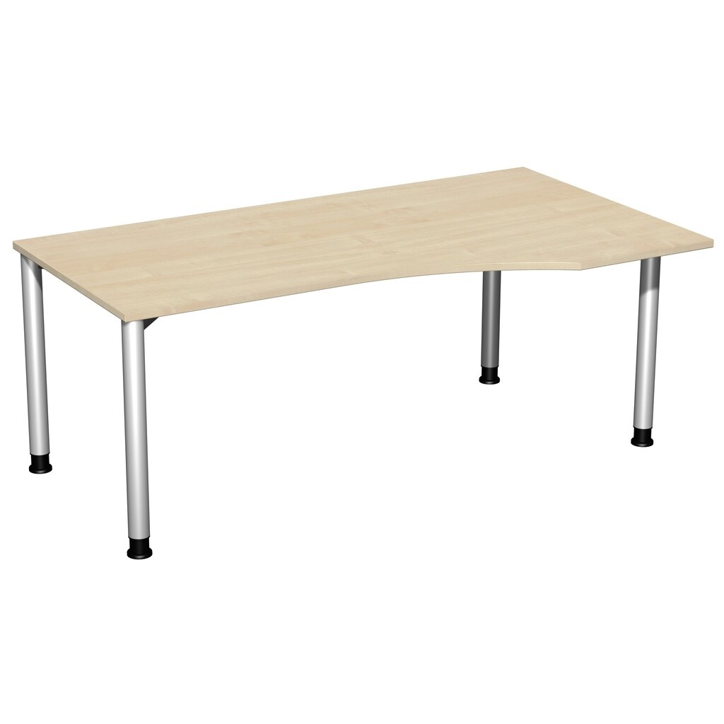 Schreibtisch PC-Form rechts Rundfuss, höhenverstellbar, 180 cm breit Ahorn/Silber