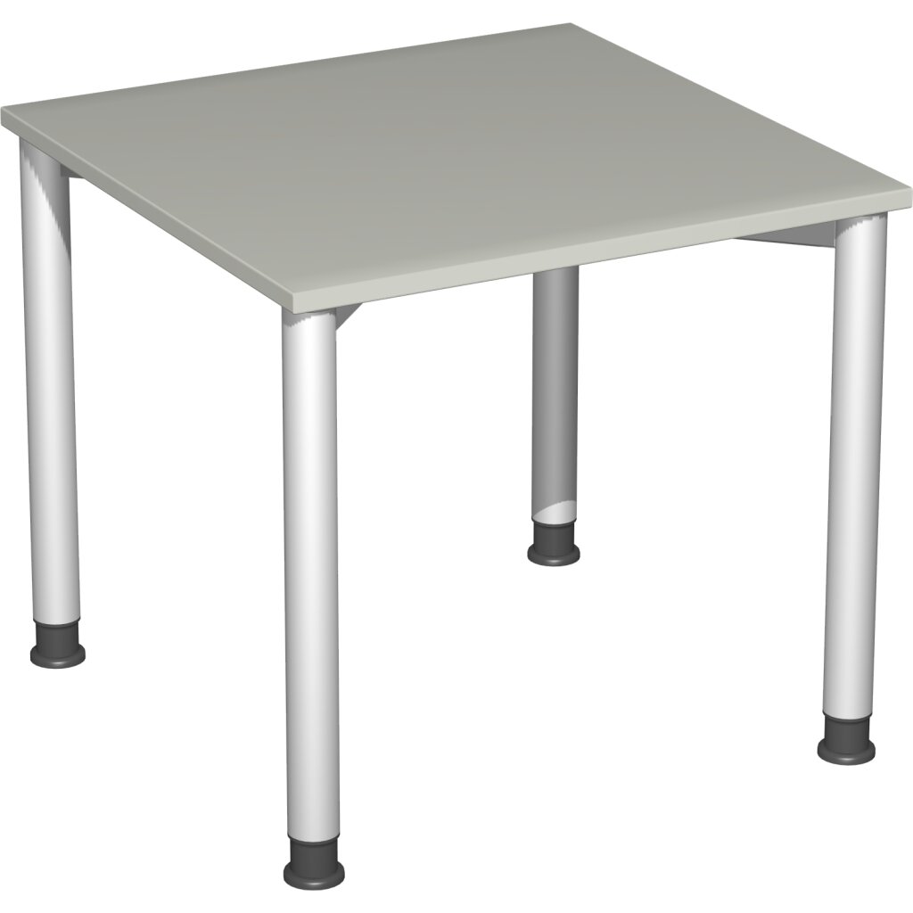 Schreibtisch Rundfuss Gestell, höhenverstellbar, 80 x 80 cm Weiss/Silber