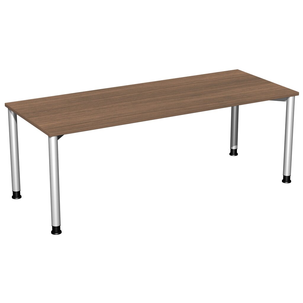Schreibtisch Rundfuss, höhenverstellbar, 200x80 cm Nussbaum Dunkel/Silber