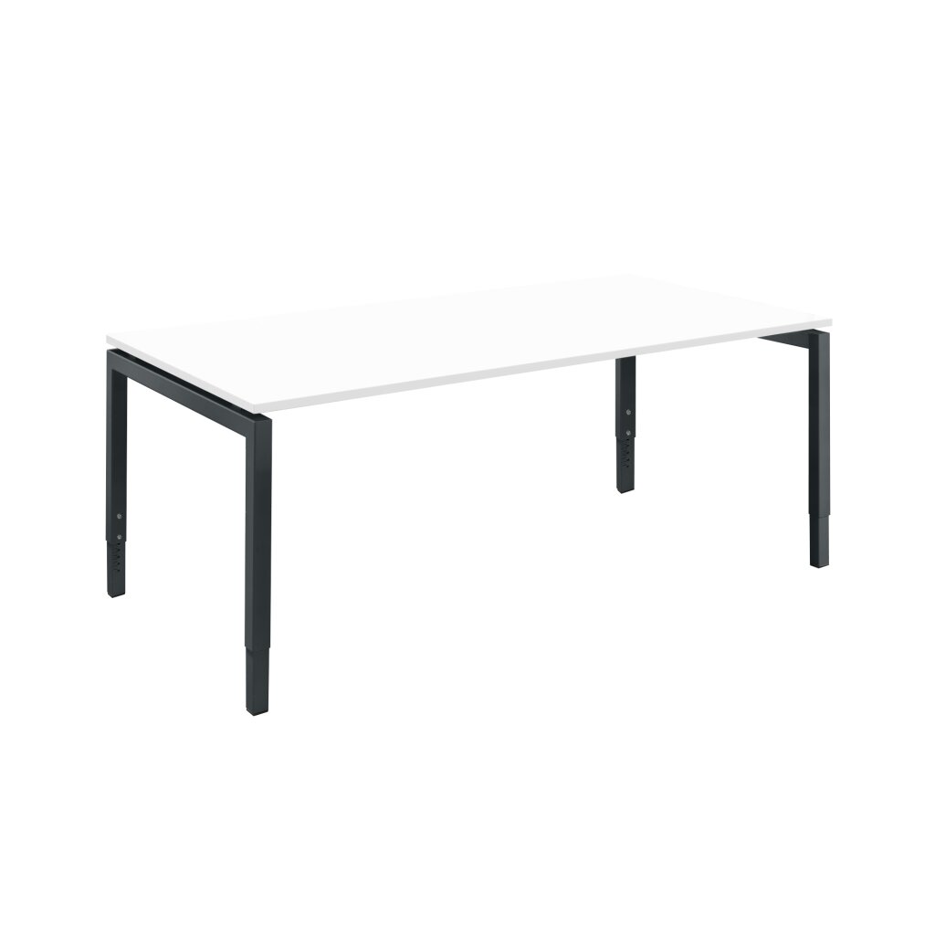 Seht stabiles selbstragendes Gestell. Die Stabilisierung findet über die Metalltraverse statt und nichht wie bei günstigen Gestellen über die Schreibtischplatte.