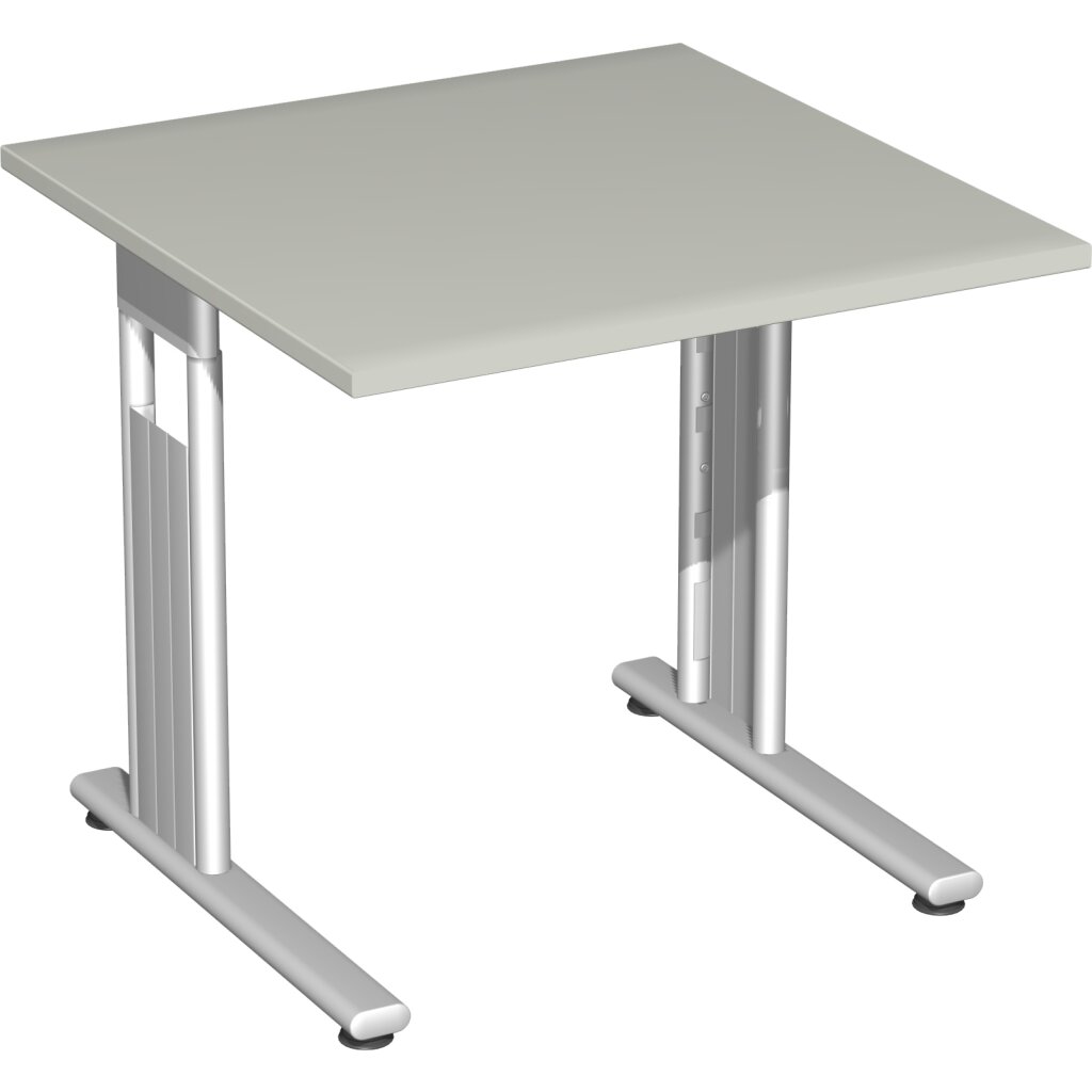 Als Tischplatte kommen Spanplatten der Güteklasse E1 entsprechend der DIN 68765 in einer Stärke von 25mm zum Einsatz. Die Kanten sind mit einem umlaufenden ABS Kantenschutzprofil, 3mm stark gerundet. Melaminharzbeschichtete Platte.