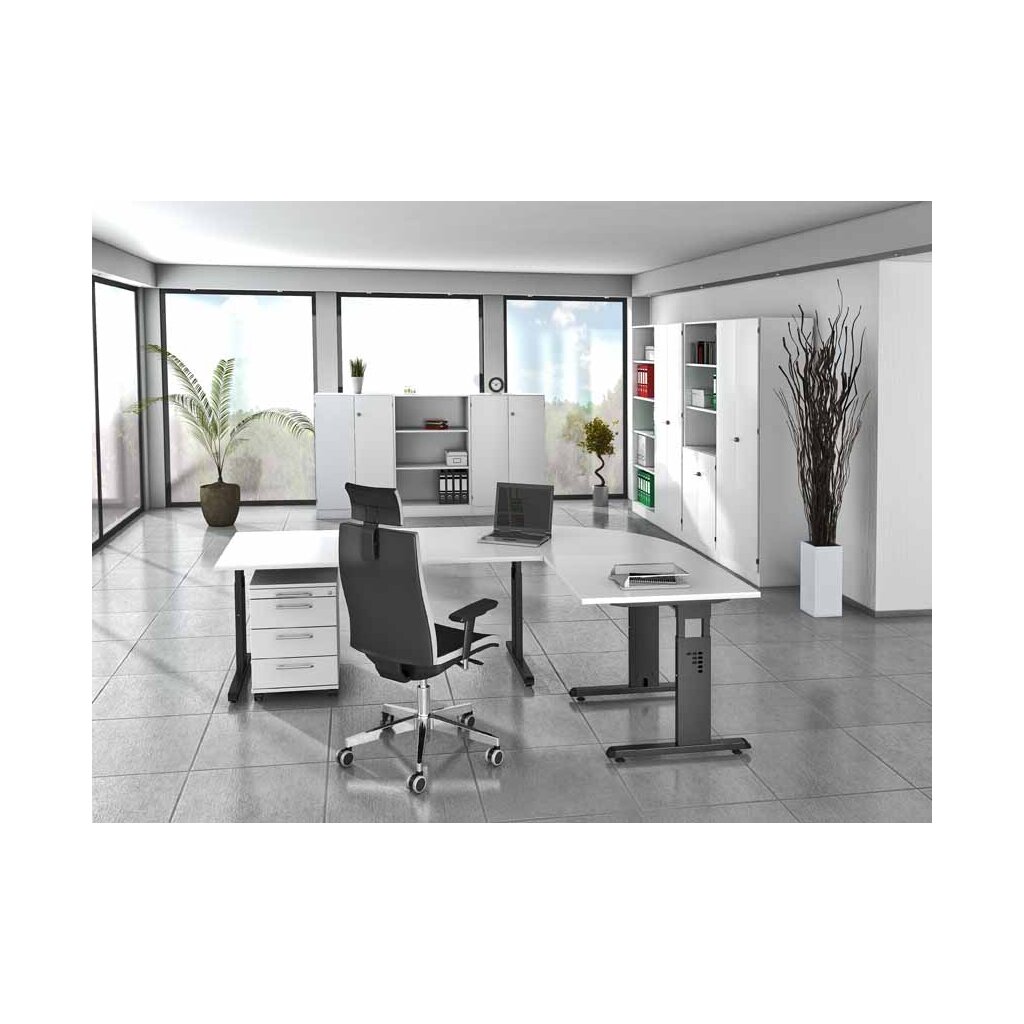 Zusätzlich können Sie den Schreibtisch mit Besprechungsanbauten und Containern ergänzen.