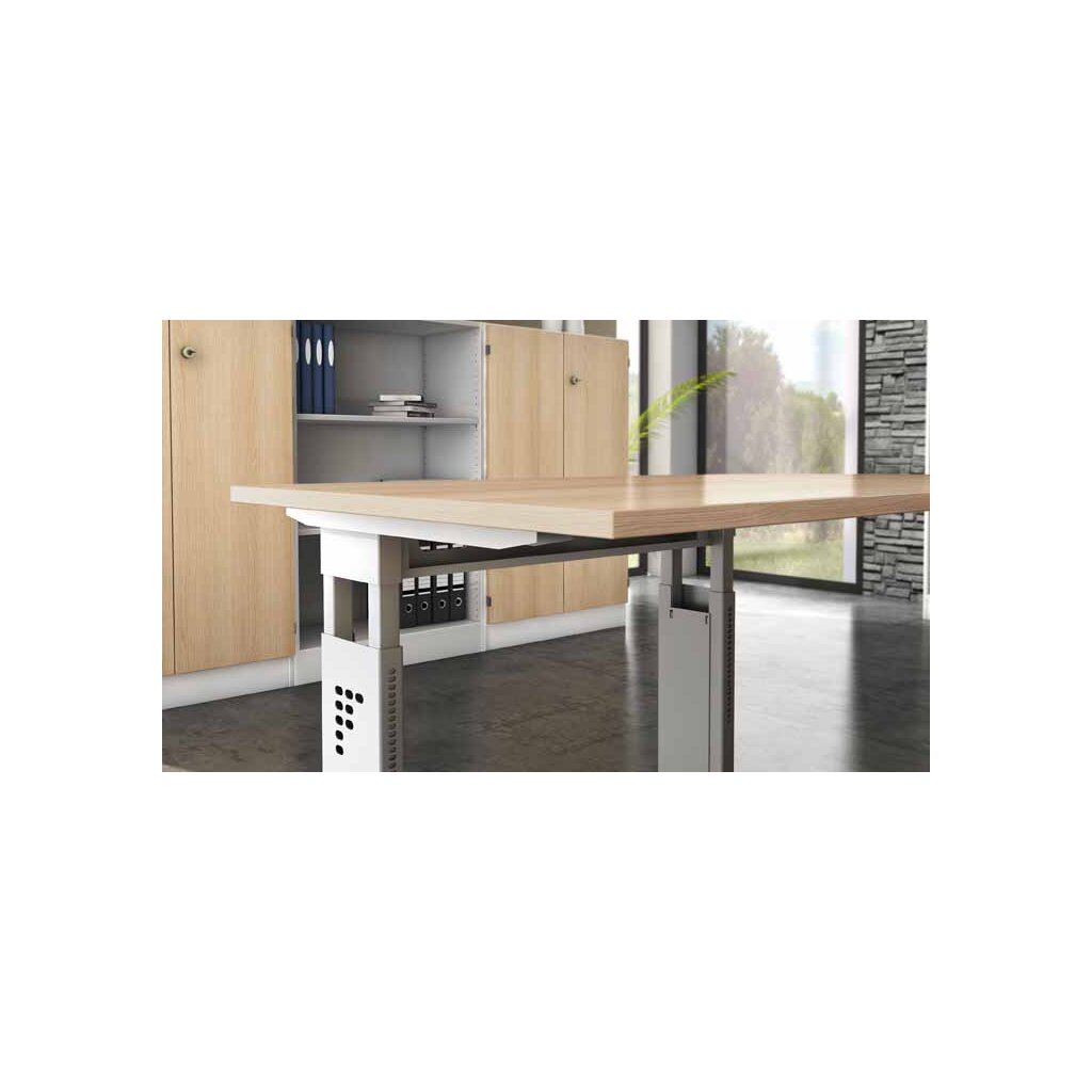 Die Schreibtische können mit Hilfe der passenden Verkettungsplatten ergänzt und zu einem Winkelschreibtisch ergänzt werden.