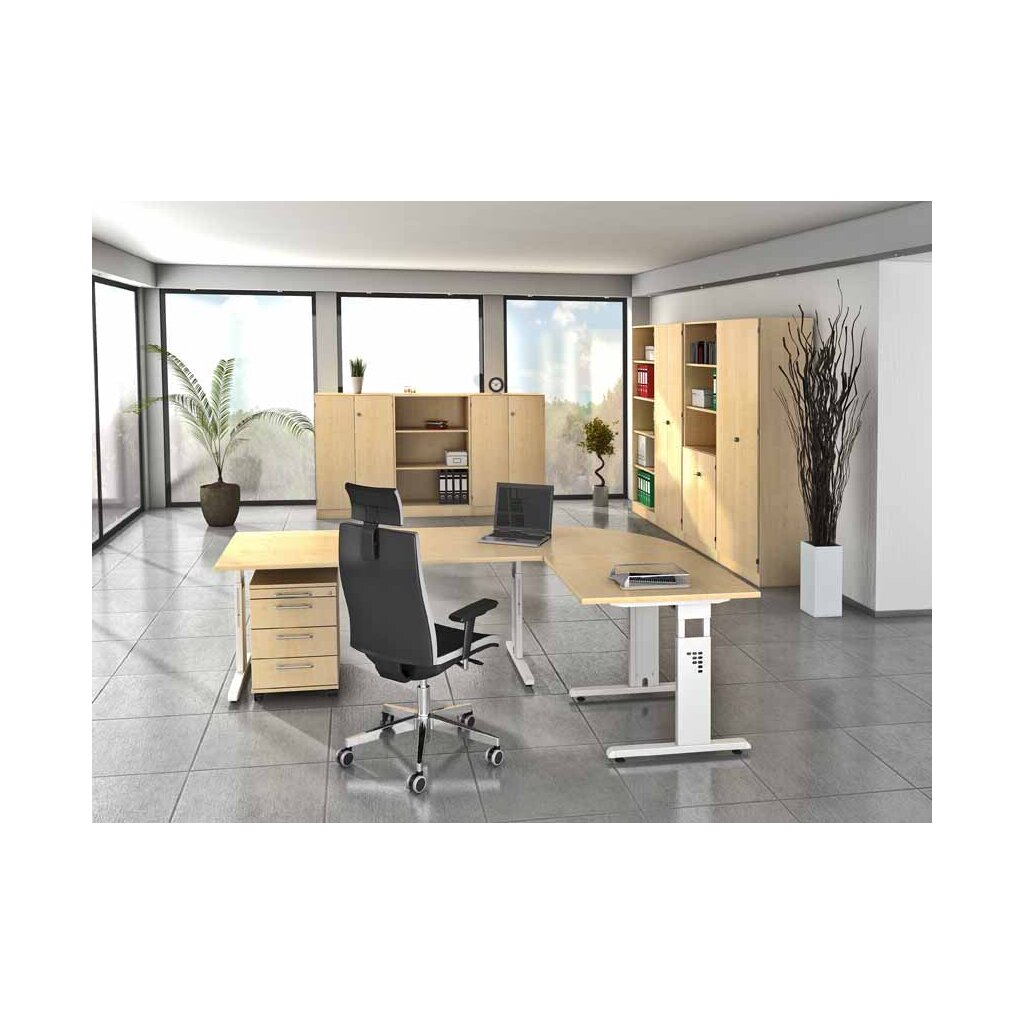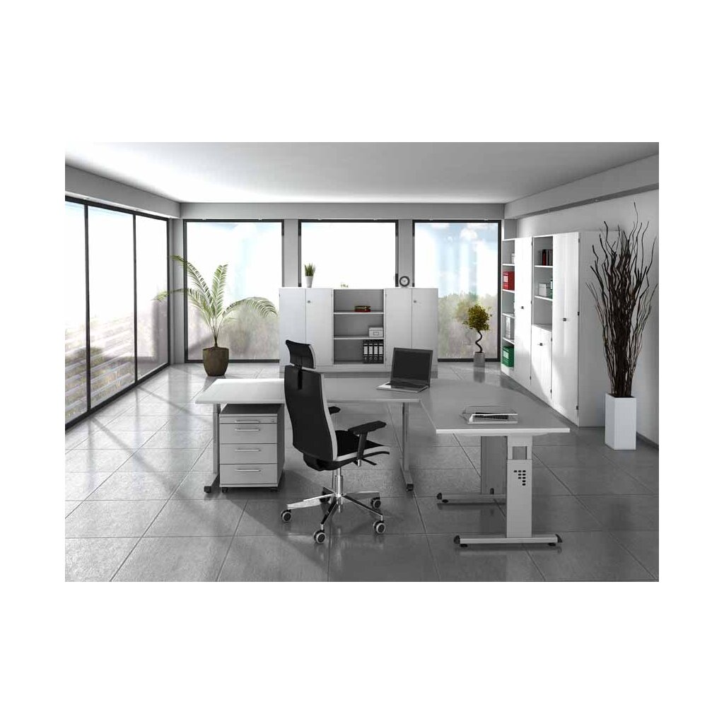 Zusätzlich können Sie den Schreibtisch mit Besprechungsanbauten und Containern ergänzen.
