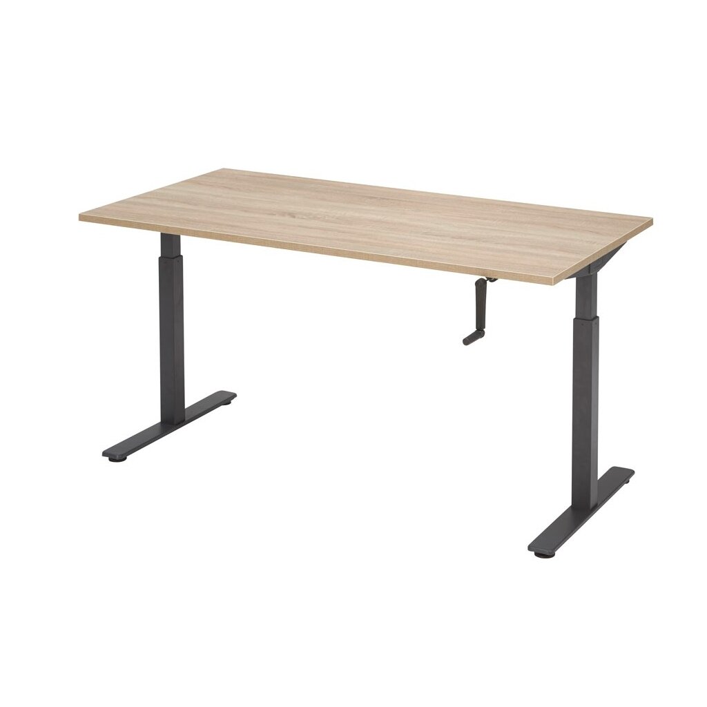 Schreibtisch höhenverstellbar mit Kurbel, Dekor Ahorn, Gestell Silber, Maß: 69-116 h. x 80 t. x 140 br. cm