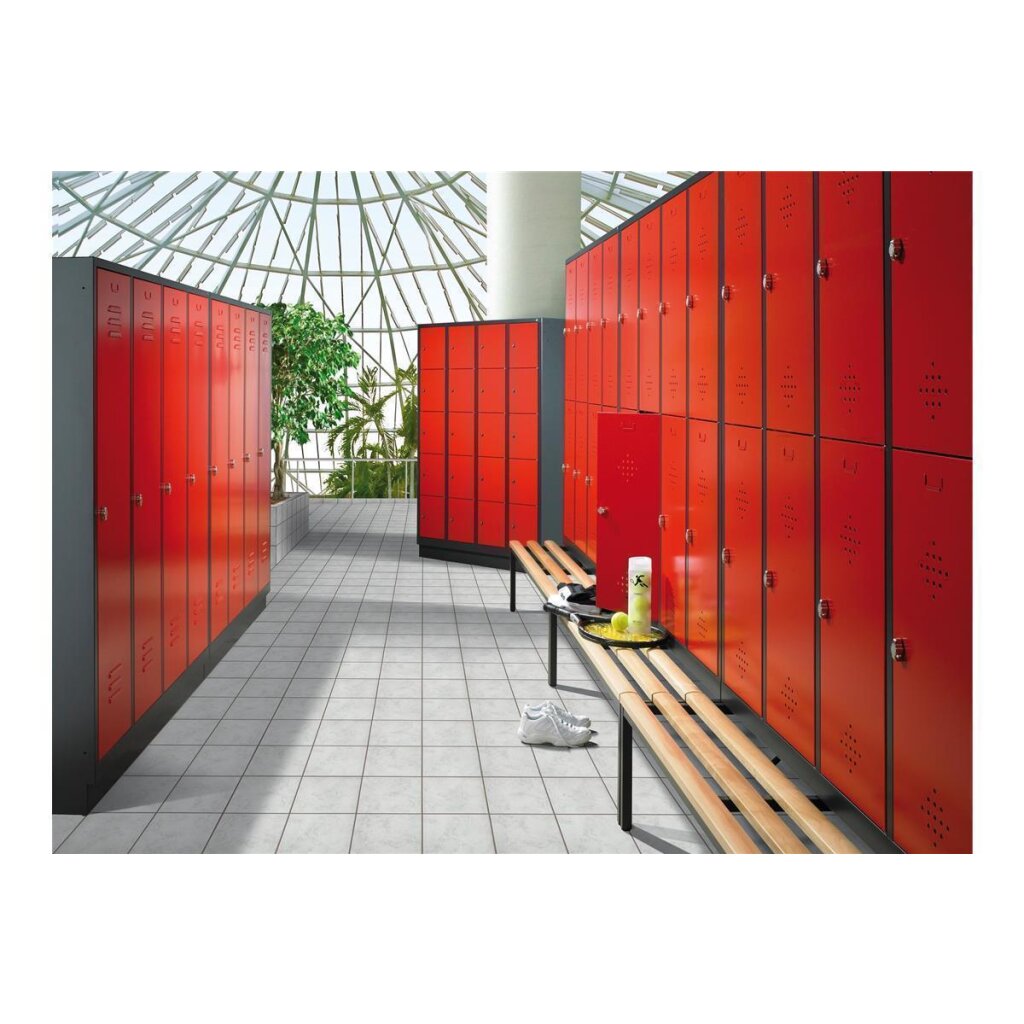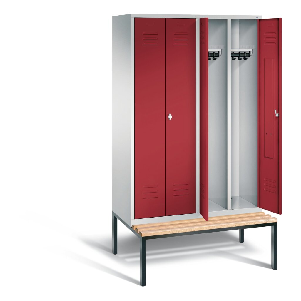 Doppelspind, Umkleideschrank mittig schliessend mit Unterbausitzbank