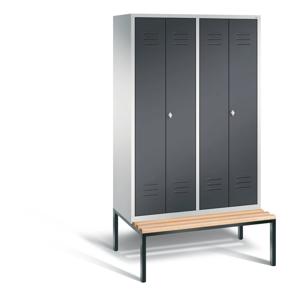 Doppelspind, Umkleideschrank mittig schliessend mit Unterbausitzbank