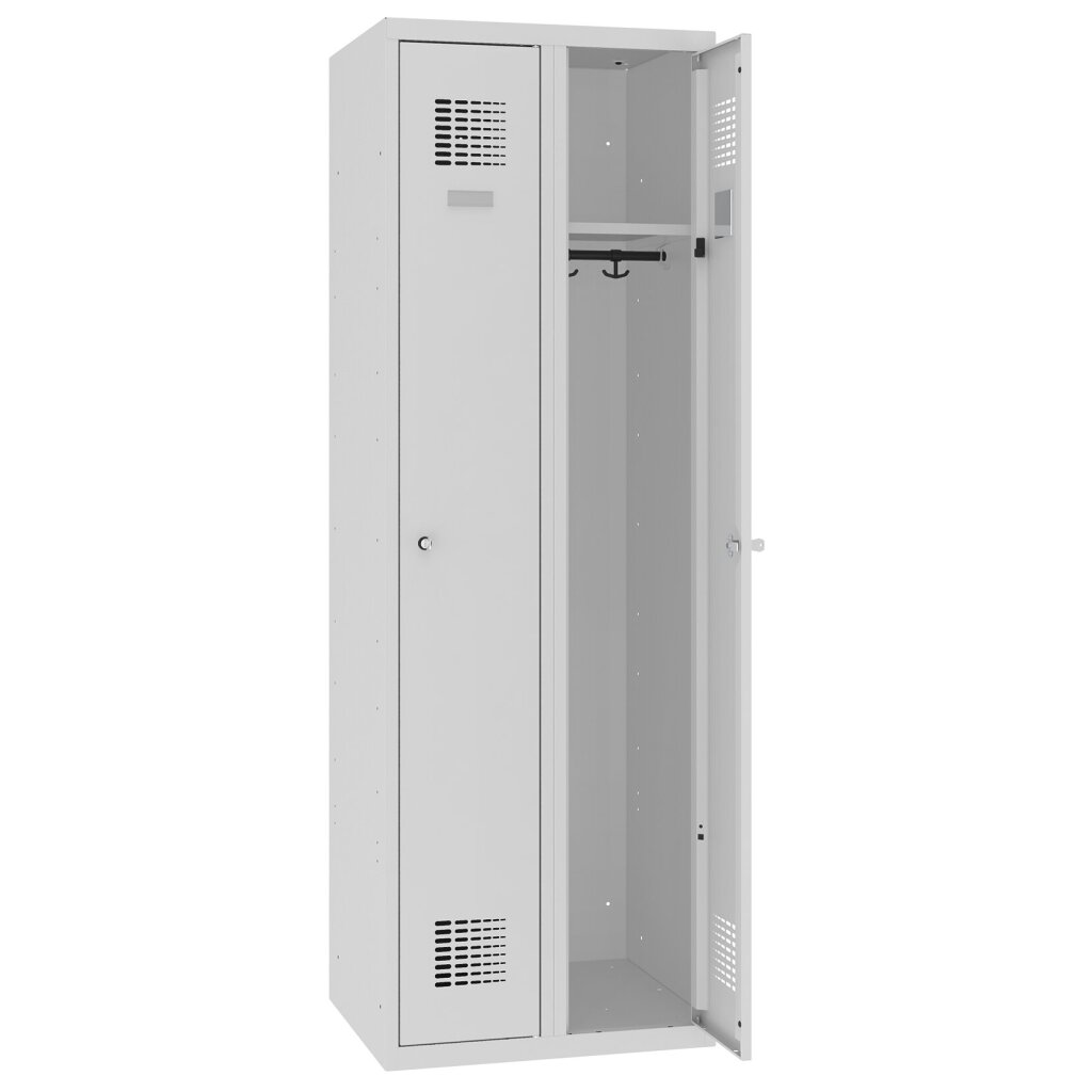 Modernes und überarbeitetes Design der Stahlspinde durch moderne und effektive Lüftungsschlitze sowie verkürzten Sockel für mehr Nutzfläche für die Schrankfächer. Der Sockel reicht dennoch aus um den Schrank bei der Bodenreinigung zu schützen.