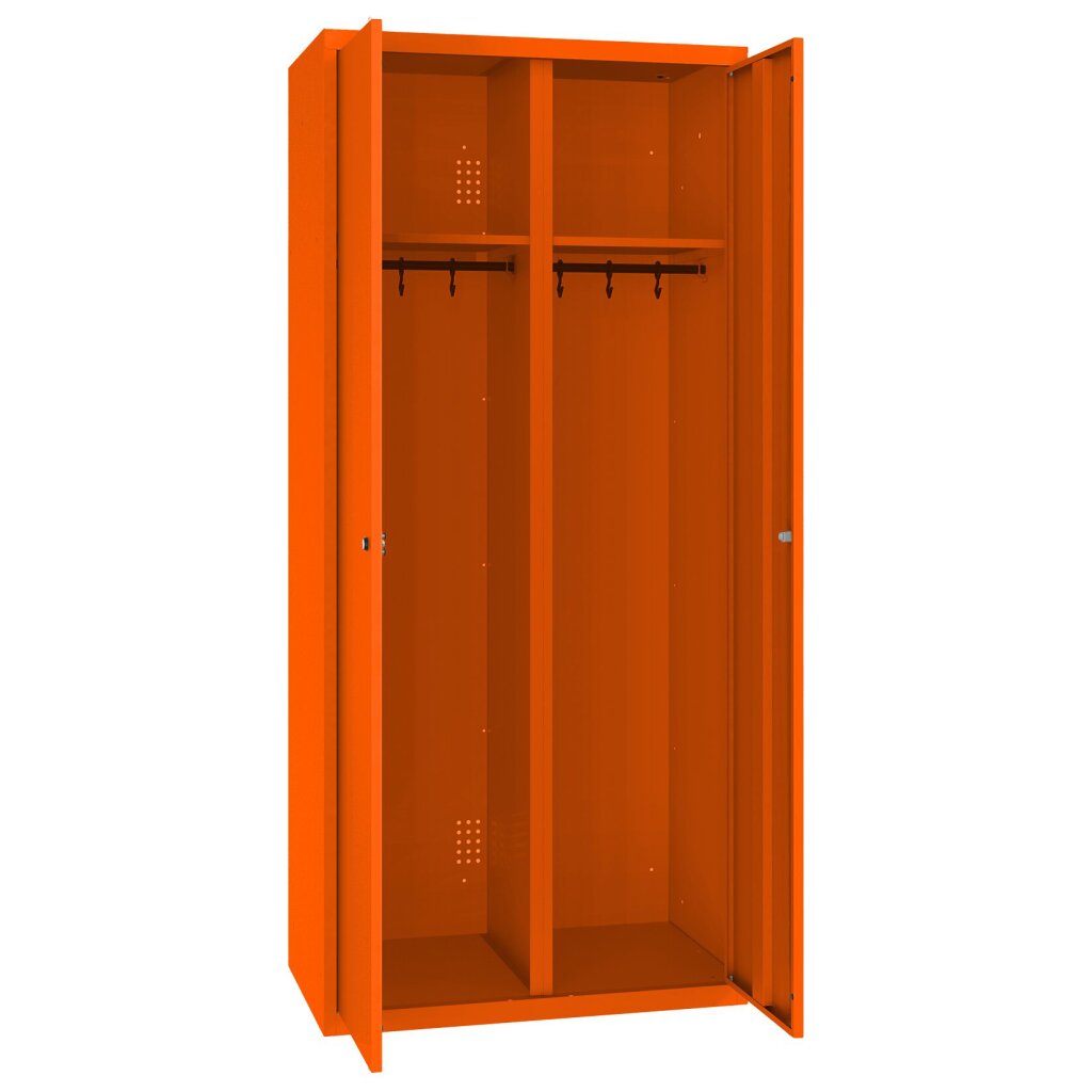 Spind Select 2 Abteile mittig schliessend Abteilbreite 300mm Korpus Reinorange RAL 2004 Türen Reinorange RAL 2004 Zylinderschloss