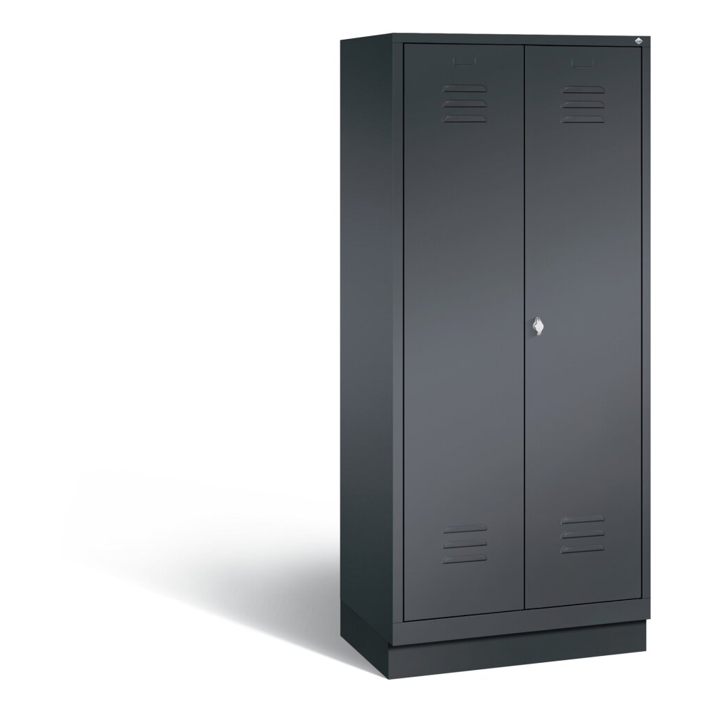 Schrank auf Sockel, Sockel (Höhe 100mm) immer in Korpusfarbe, vorne leicht zurückgesetzt für eine gut funktionierende Belüftung