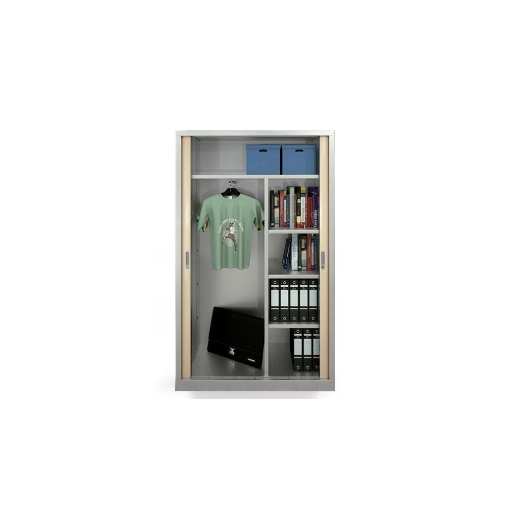 Querrolladenschrank in absoluter Spitzenqualität, abschliessbar Schrank wird fertig montiert angeliefert !!!. Schränke werden im Werk verschweisst. Maße: 120 br. x 195 h. x 42,5 t. cm, weitere Optionen siehe unten Innenaufteilung: oben ein Fachboden quer, links Kleiderstange, rechts 3x schmale Fachböden Sie können aus 4 verschiedenen Korpusfarben auswählen: