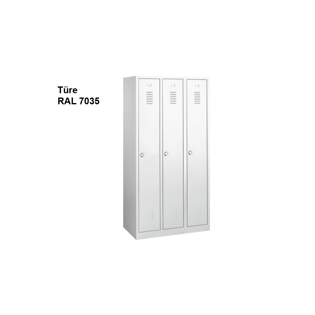 Stahl-Kleider-Schrank 3 Abteile 300mm, Drehriegel und Zylinderschloss beigelegt