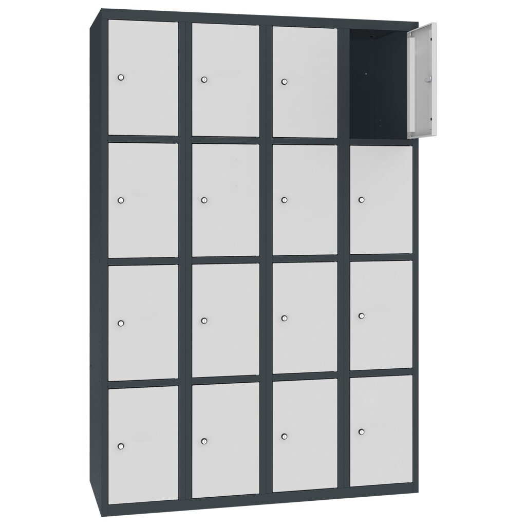 Stahl Schliessfachschrank Select 16 Fächer 300mm Abteilbreite Korpus Anthrazitgrau RAL 7016 Türen Lichtgrau RAL 7035