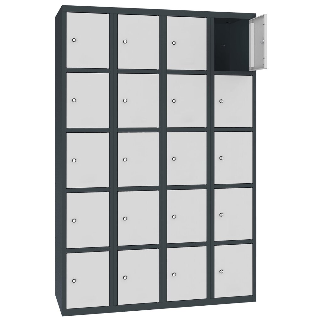 Insgesamt 20 Fächer, 4 Abteilreihen mit je 5 Türen übereinander