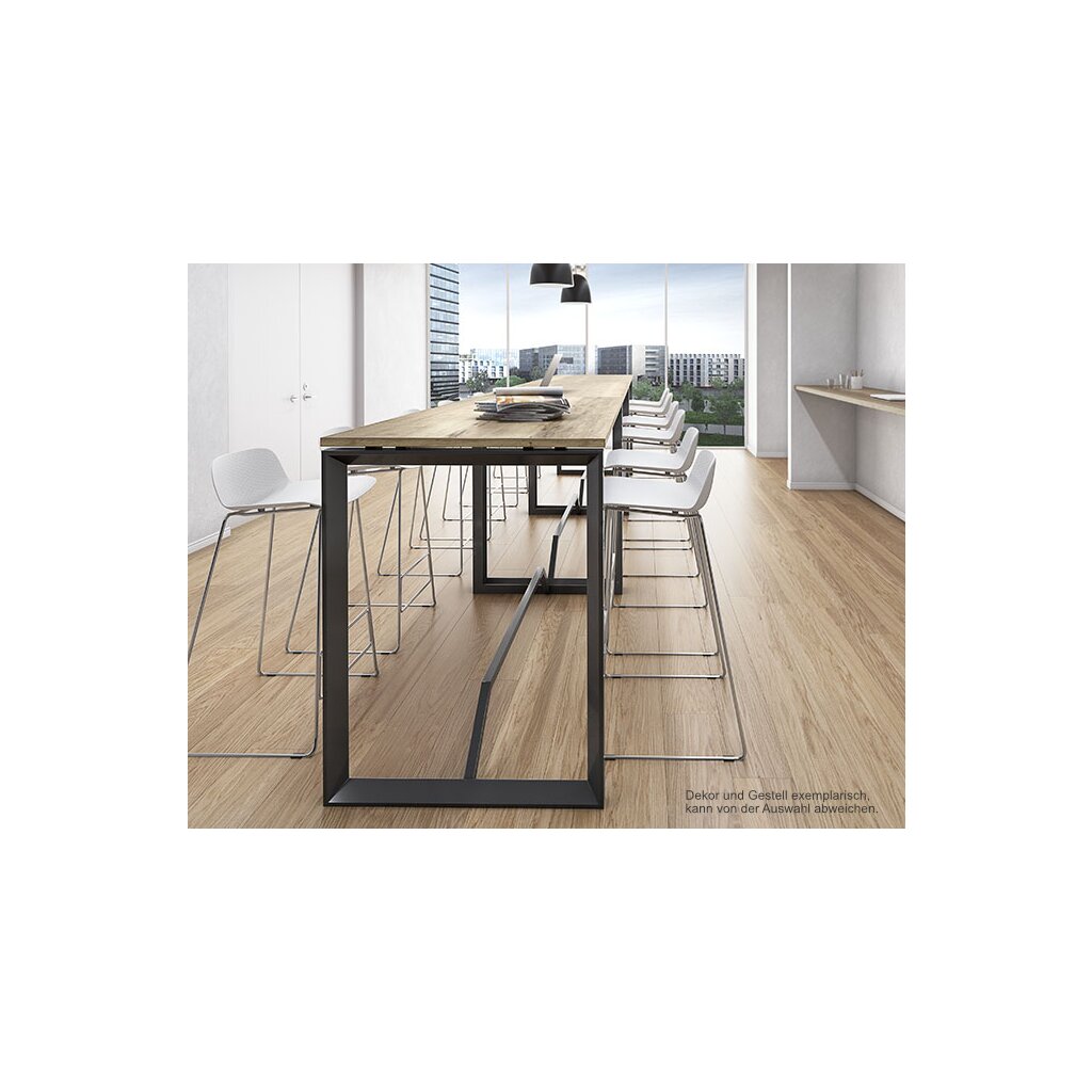 Die sachlich moderne Form mit integrierter Fußablage macht den Stehtisch zu einem zeitlosen Klassiker, an dem Sie lange Freude haben werden.