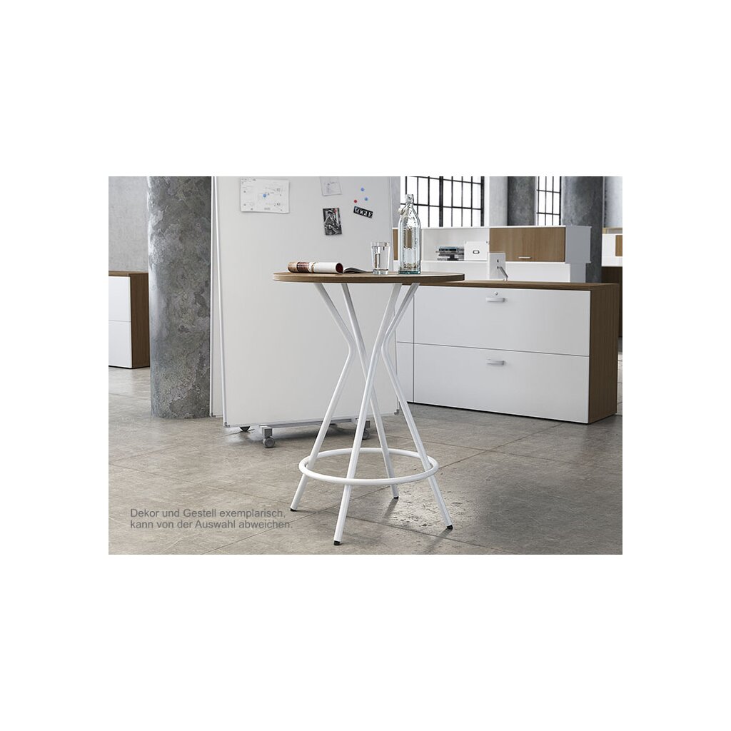 Dieser stabile und pflegeleichter Rundtisch passt mit seinem schlichten Erscheinungsbild zum Einsatz im Büro genauso gut wie in jede Cafeteria.