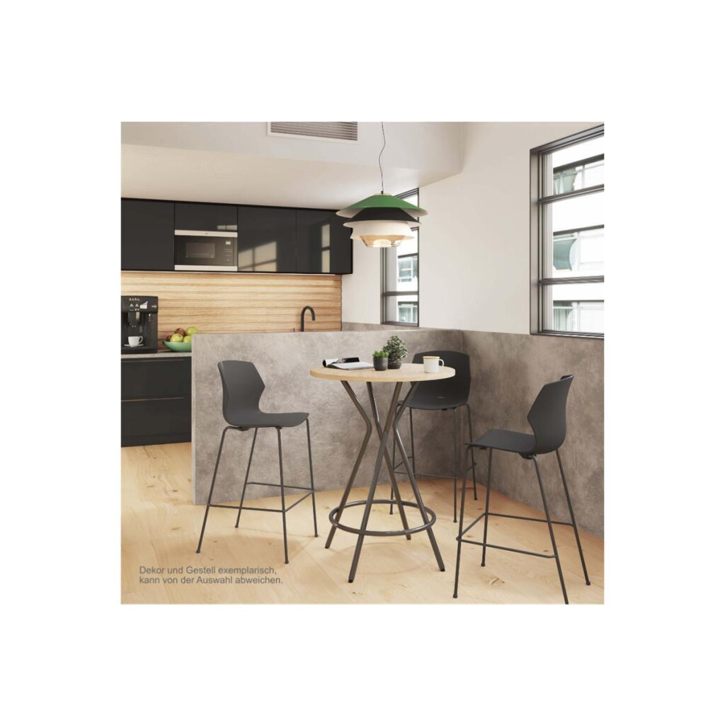 Dieser stabile und pflegeleichter Rundtisch passt mit seinem schlichten Erscheinungsbild zum Einsatz im Büro genauso gut wie in jede Cafeteria.