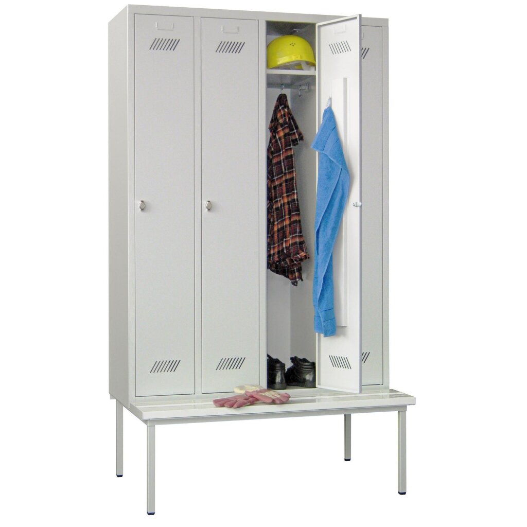 Umkleideschrank 4 Abteile auf Unterbausitzbank