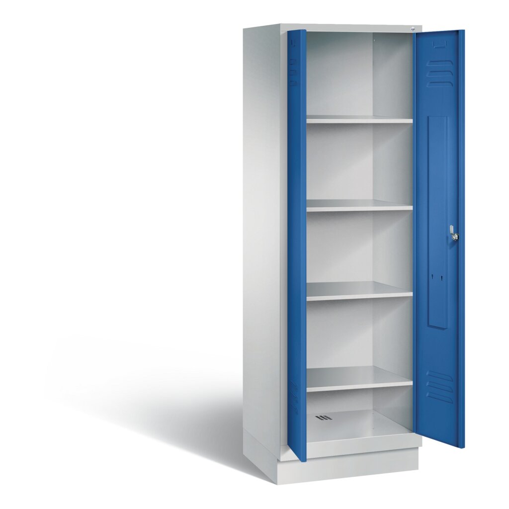 Schrank auf Füssen, Füsse aus Kunsstoff (Höhe 150mm) für erhöhten Korrossionsschutz, mit Bodengleitern, Optional auch mit Höhenausgleichsfüssen lieferbar
