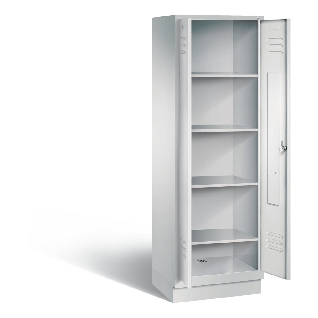 Schrank auf Sockel, Sockel (Höhe 100mm) immer in Korpusfarbe, vorne leicht zurückgesetzt für eine gut funktionierende Belüftung