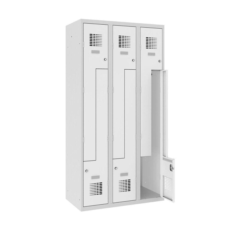 6 Abteile mit Z-Türen 1x links und 1x rechts angeschlagen, jeweils 1x Schließung oben und 1x unten.